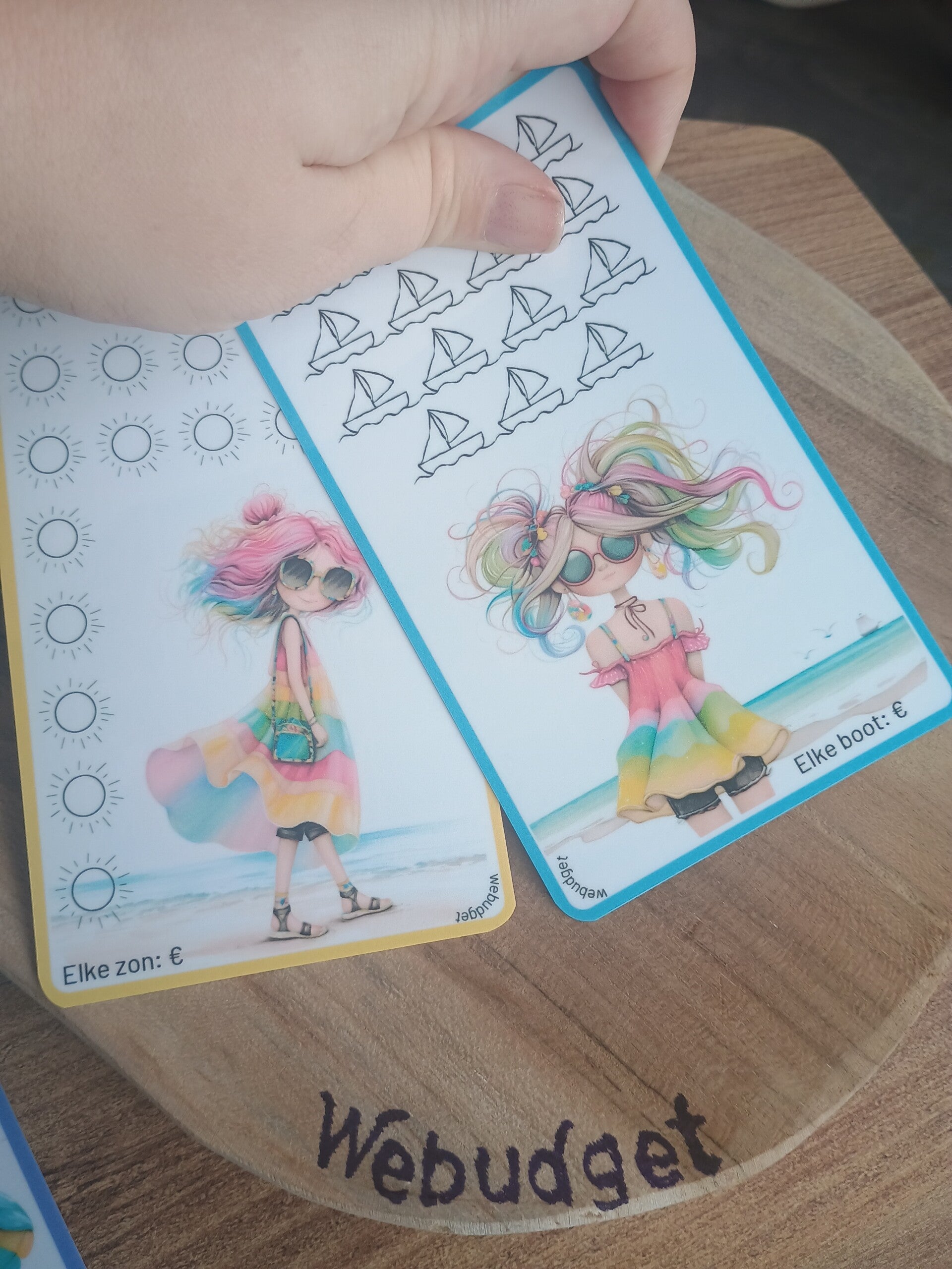 Passen in een a6 binder. Zijn eventueel ook te gebruiken met een kleurendobbel.