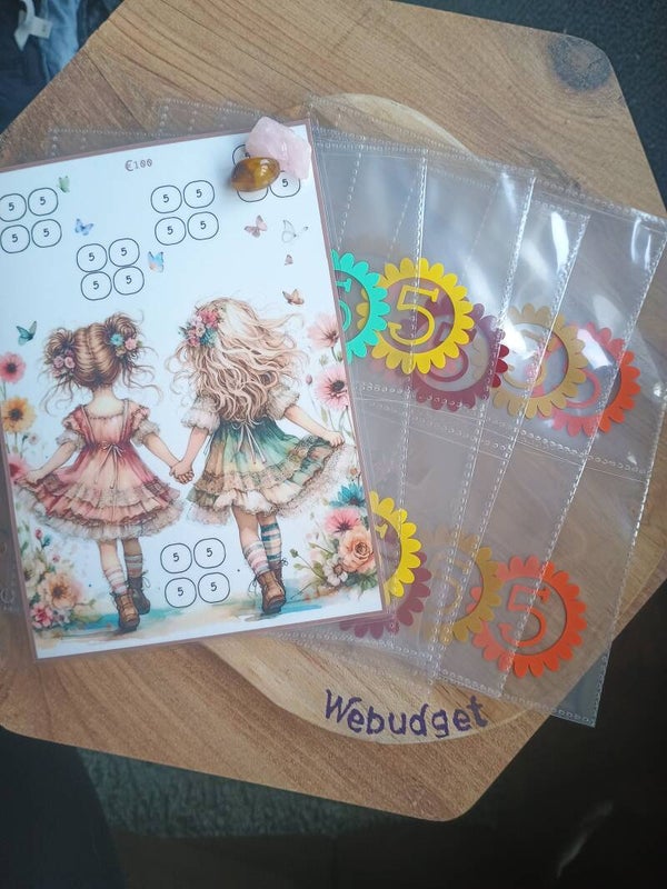 Je krijgt hierbij 5 mapjes met stickers erop en de challenge. De challenge is aan de linkerkant geperforeerd